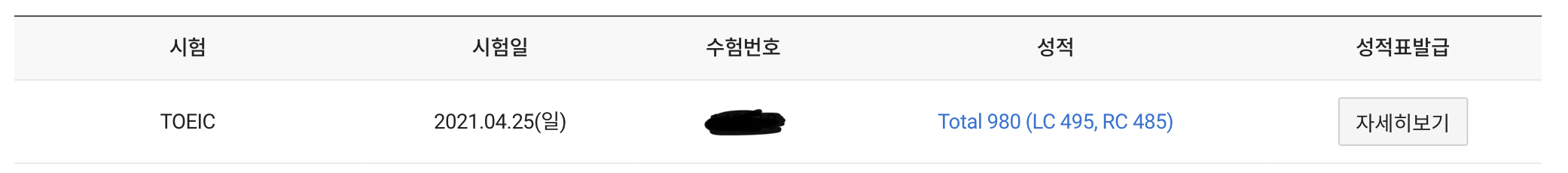 4월부로 토익시험이 만료가 되어 다시보는 수밖에 방법이 없었다.