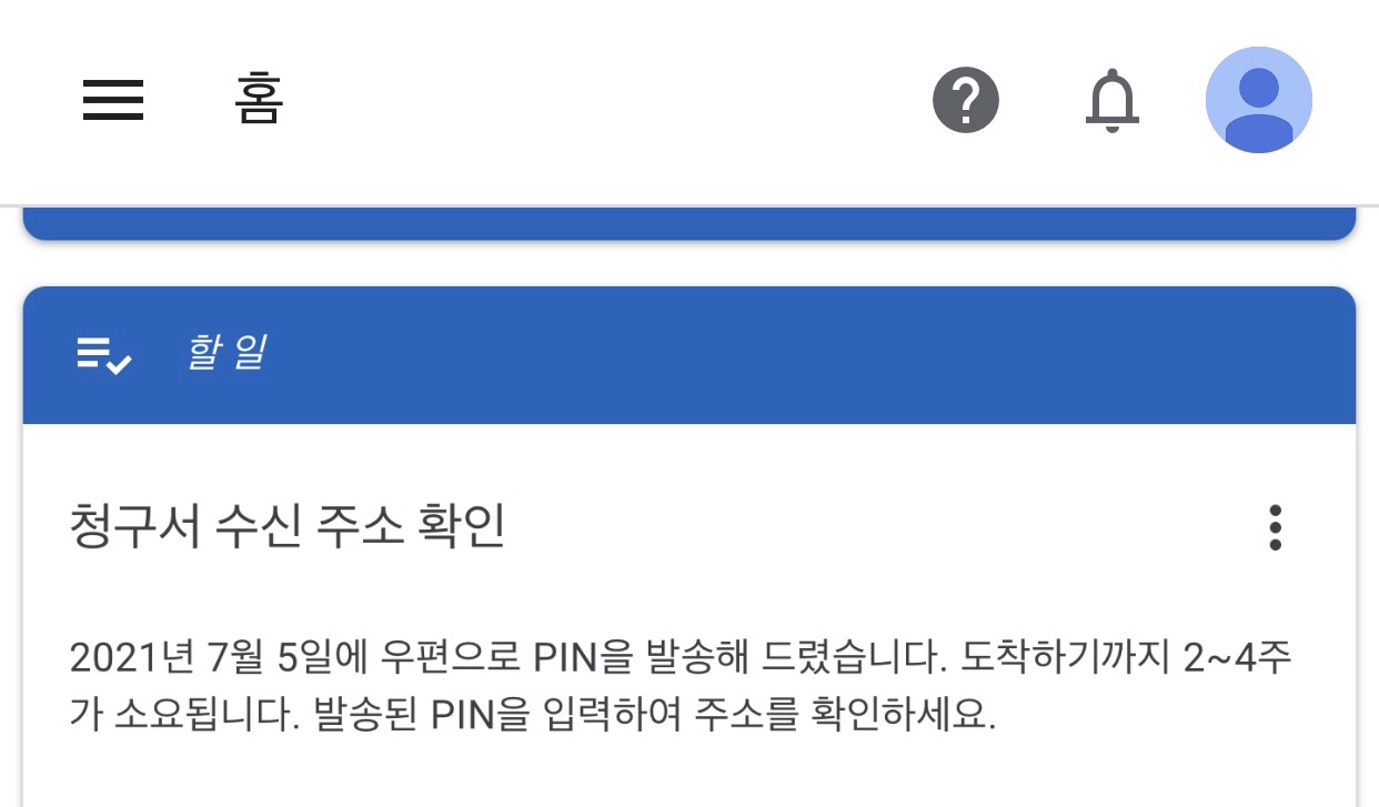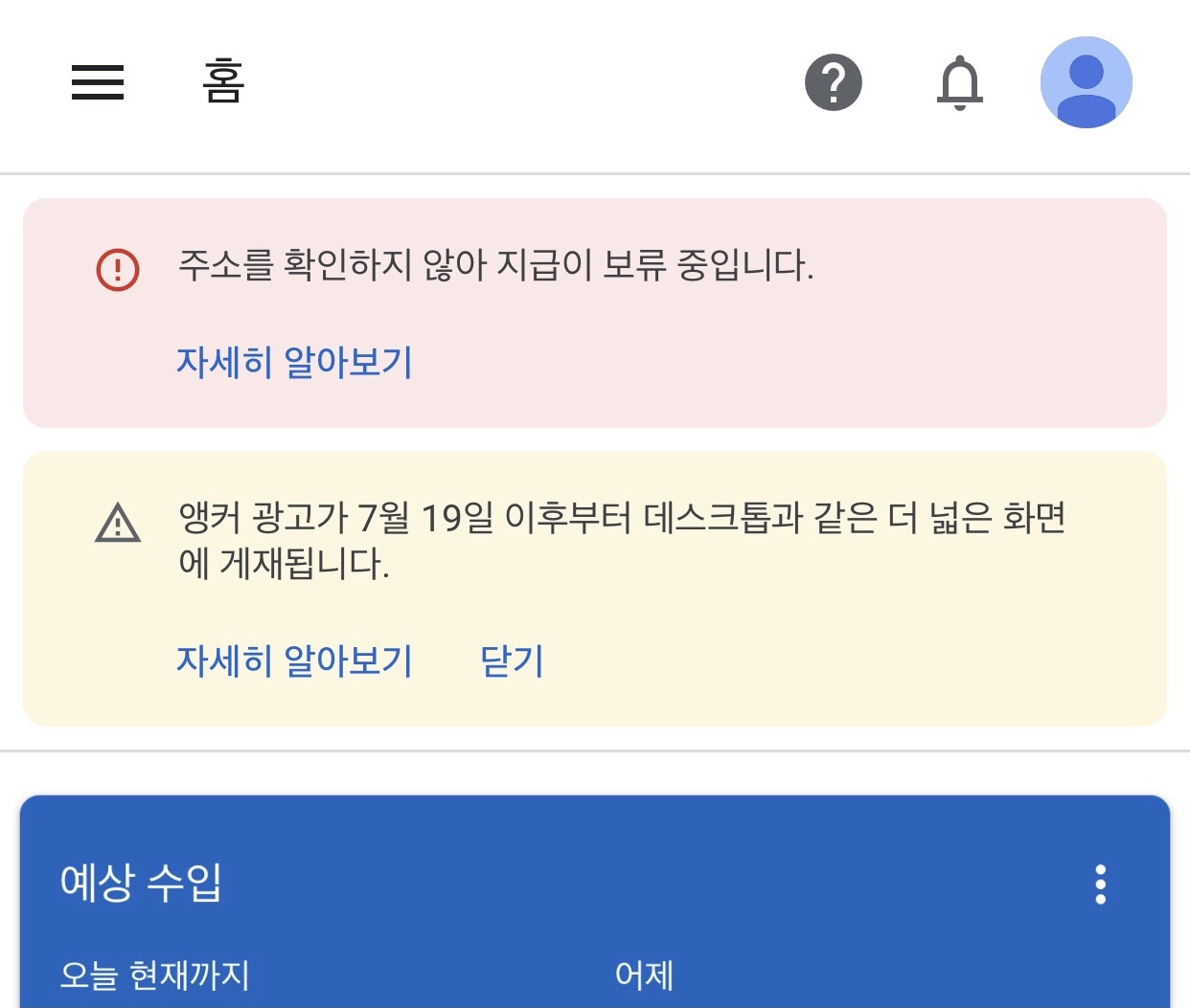 그런데 위쪽에 ‘주소를 확인하지 않아 지급이 보류 중입니다.’라는 경고문(?)이 뜬다.