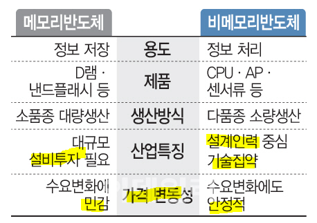 삼성전자와 메모리 반도체에서 우위를 가지고 있고, 비메모리 반도체분야에서 한국은 세계 4% 점유율에 불과하다.