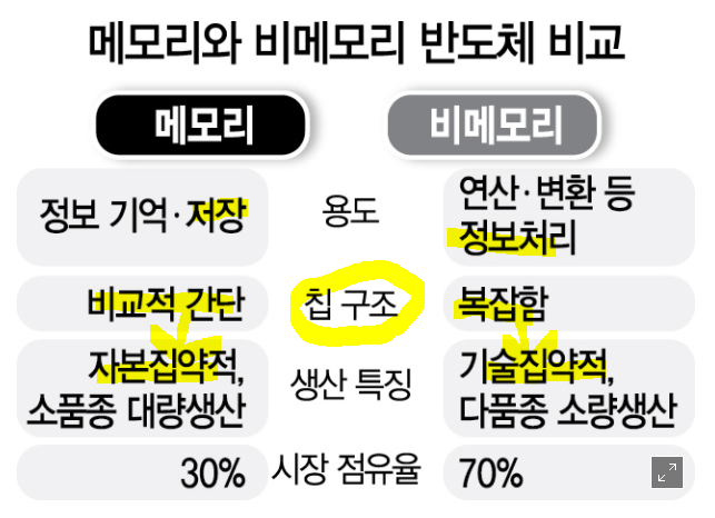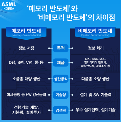 1. 메모리 반도체와 비메모리 반도체의 차이점