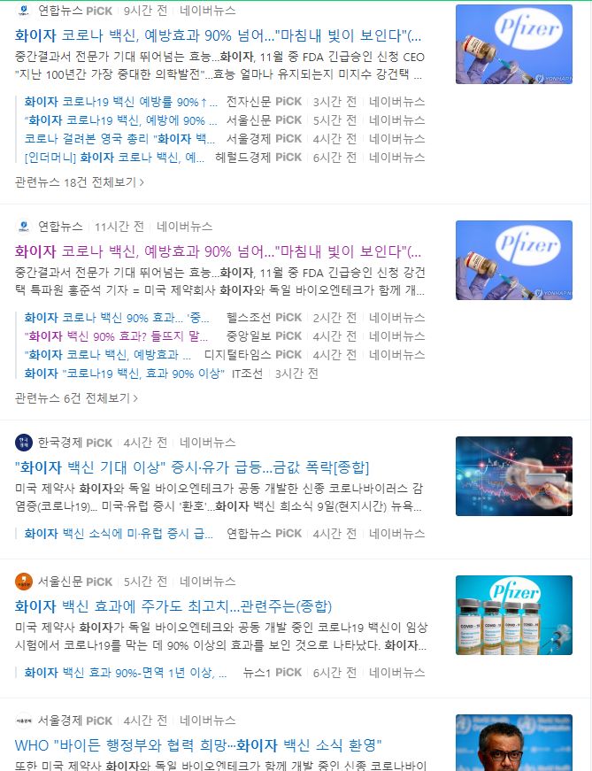 어제 저녁 CNBC 에 화이자 백신관련해서 속보가 떠있길래 확인해봤더니 반가운 백신 소식이 떠있는것이 아닌가...!