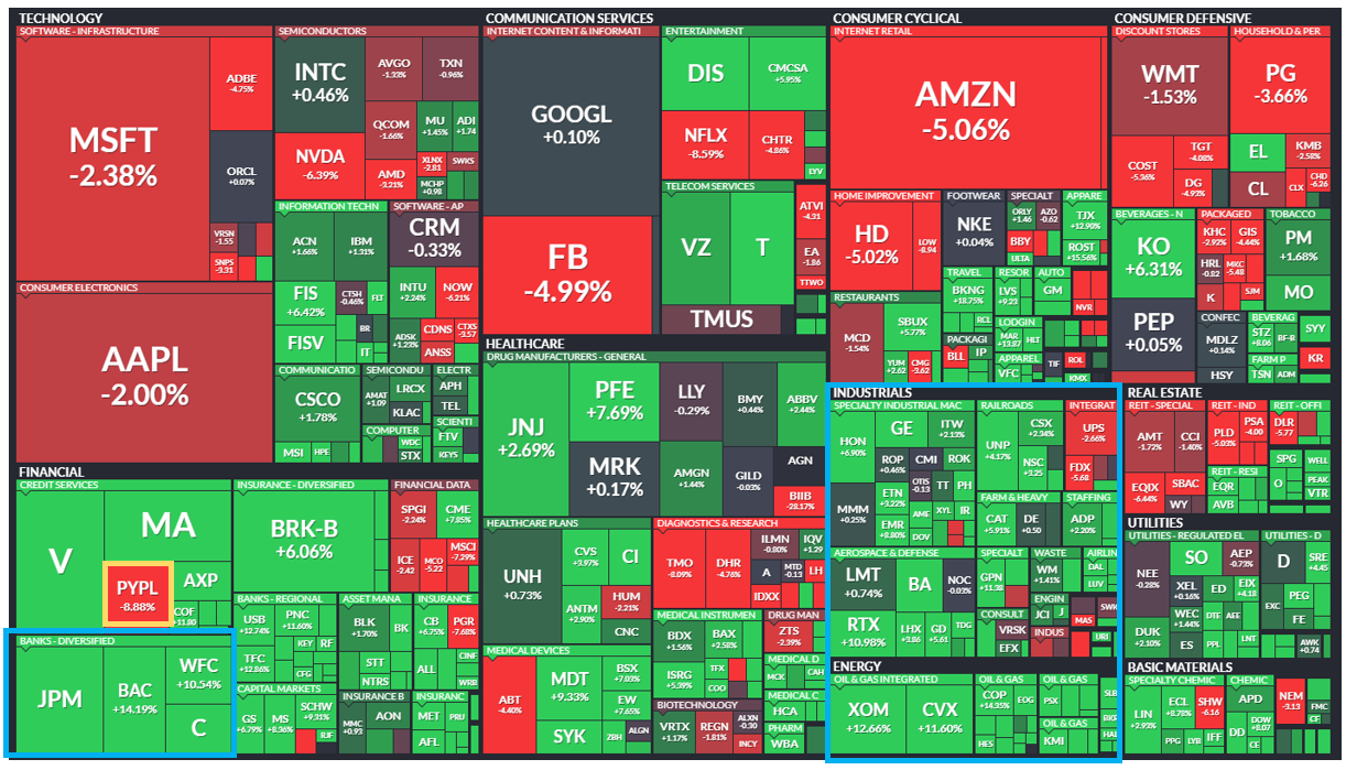 노란 네모 - 페이팔 (참고로, 비자나 마스터카트는 언택이 아닌 컨택주에 해당한다.), TECHNOLOGY 쪽도 하락한것이 보임