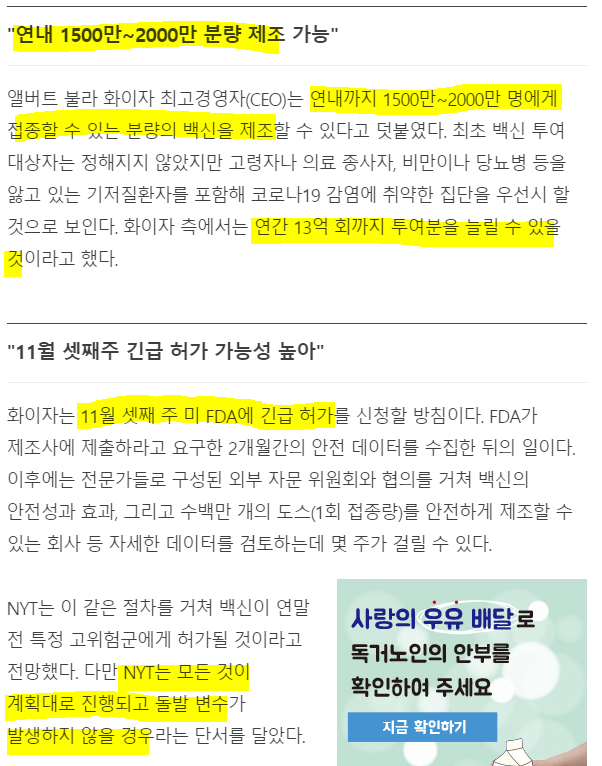 하지만 조심해야 할 것은, 아직 백신이 확실히 개발되어 나왔다는 것은 아니고, 중간단계에서 저만큼 성과를 냈다는 것이니 조금만 더 인내를 가져야 할 것 같다.