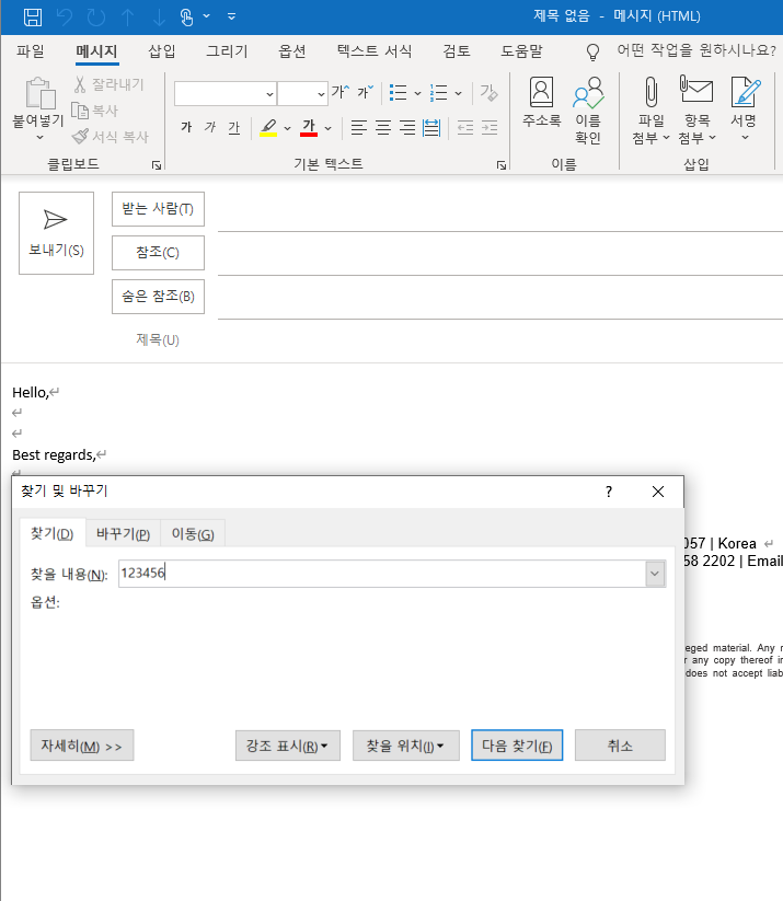 outlook 에서 ctrl F 를 누르면 '찾기'가 되지 않고 새로운 메일쓰기 창이 뜬다.