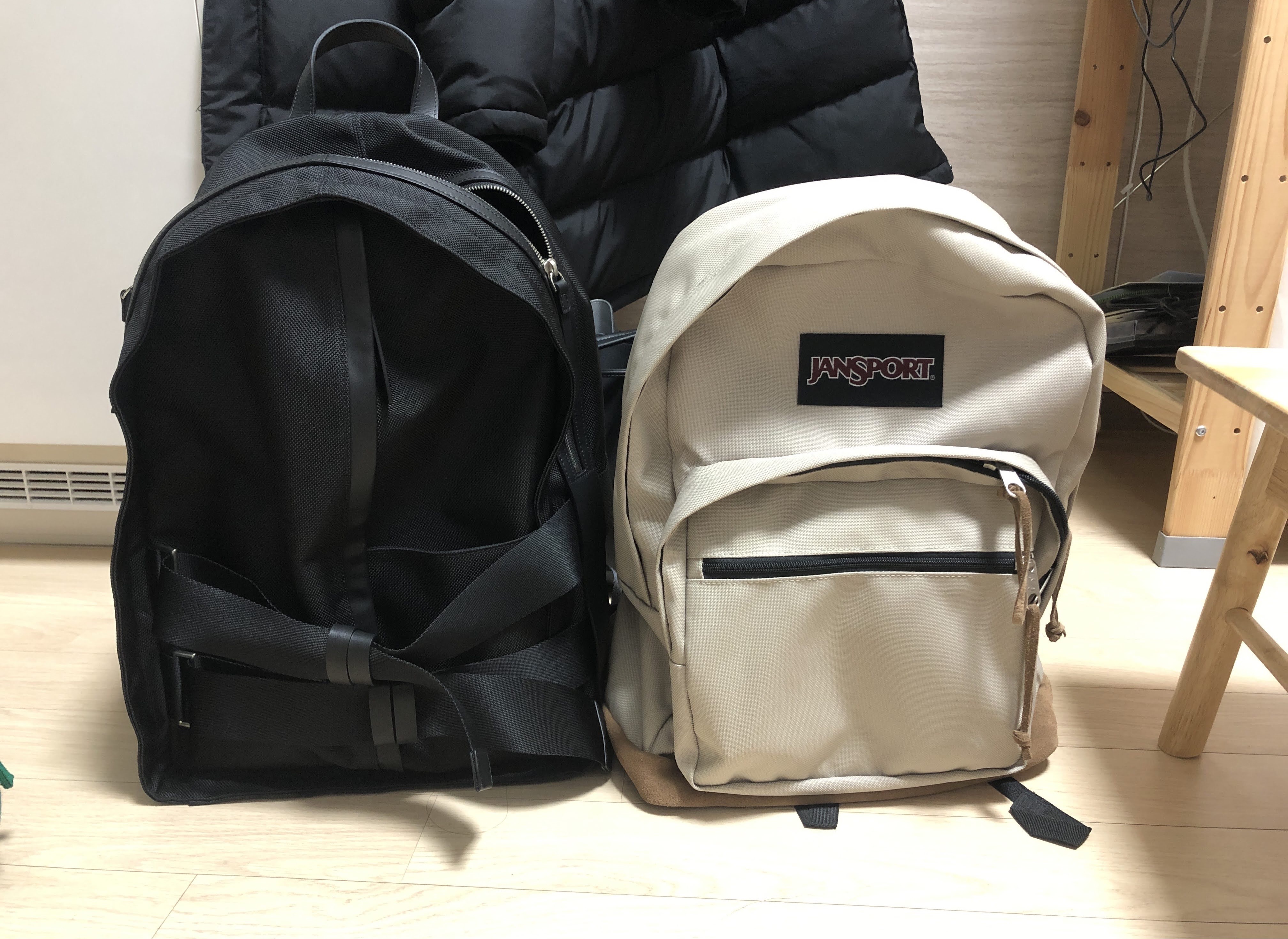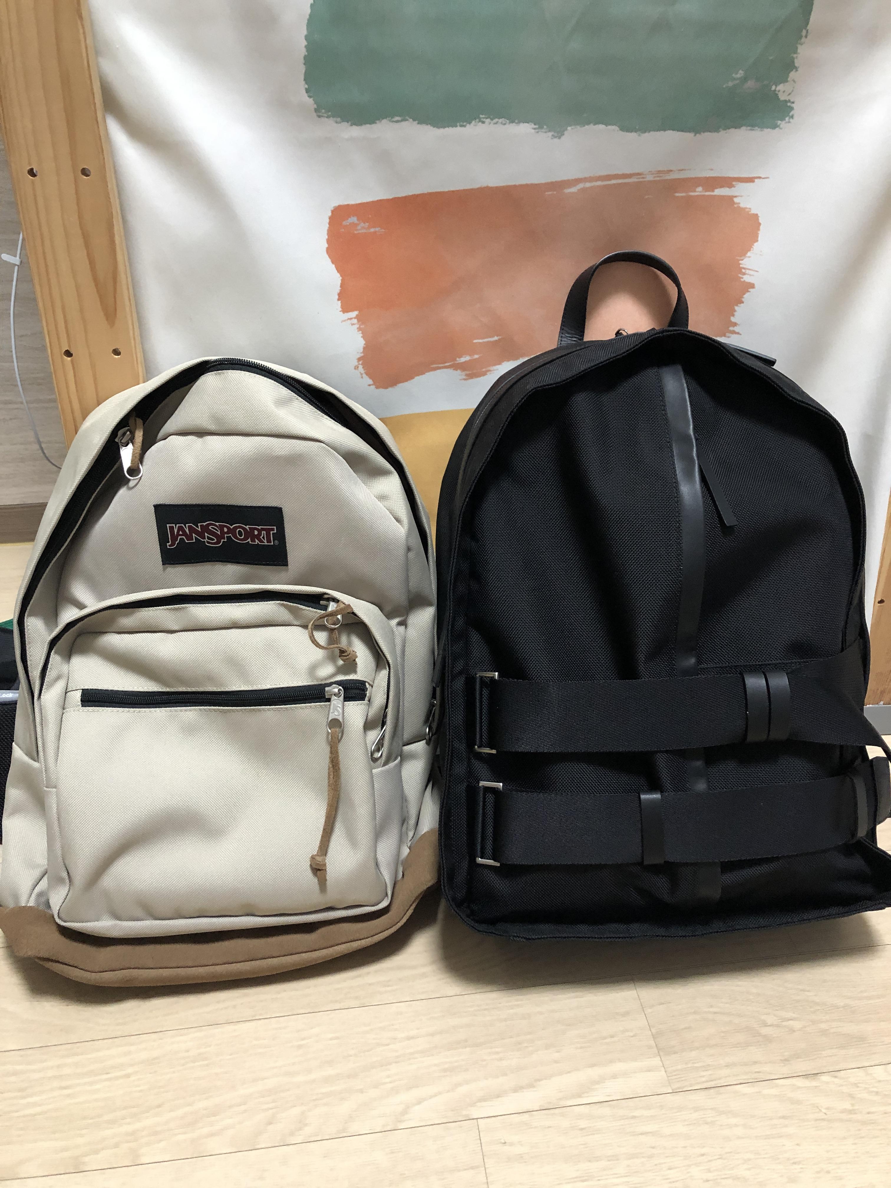 잔스포츠 라이트팩이 33*46*21cm 사이즈인데, 시스템 옴므 백팩이 각이 더 잡혀있어서 훨씬 더 커보인다ㅠ