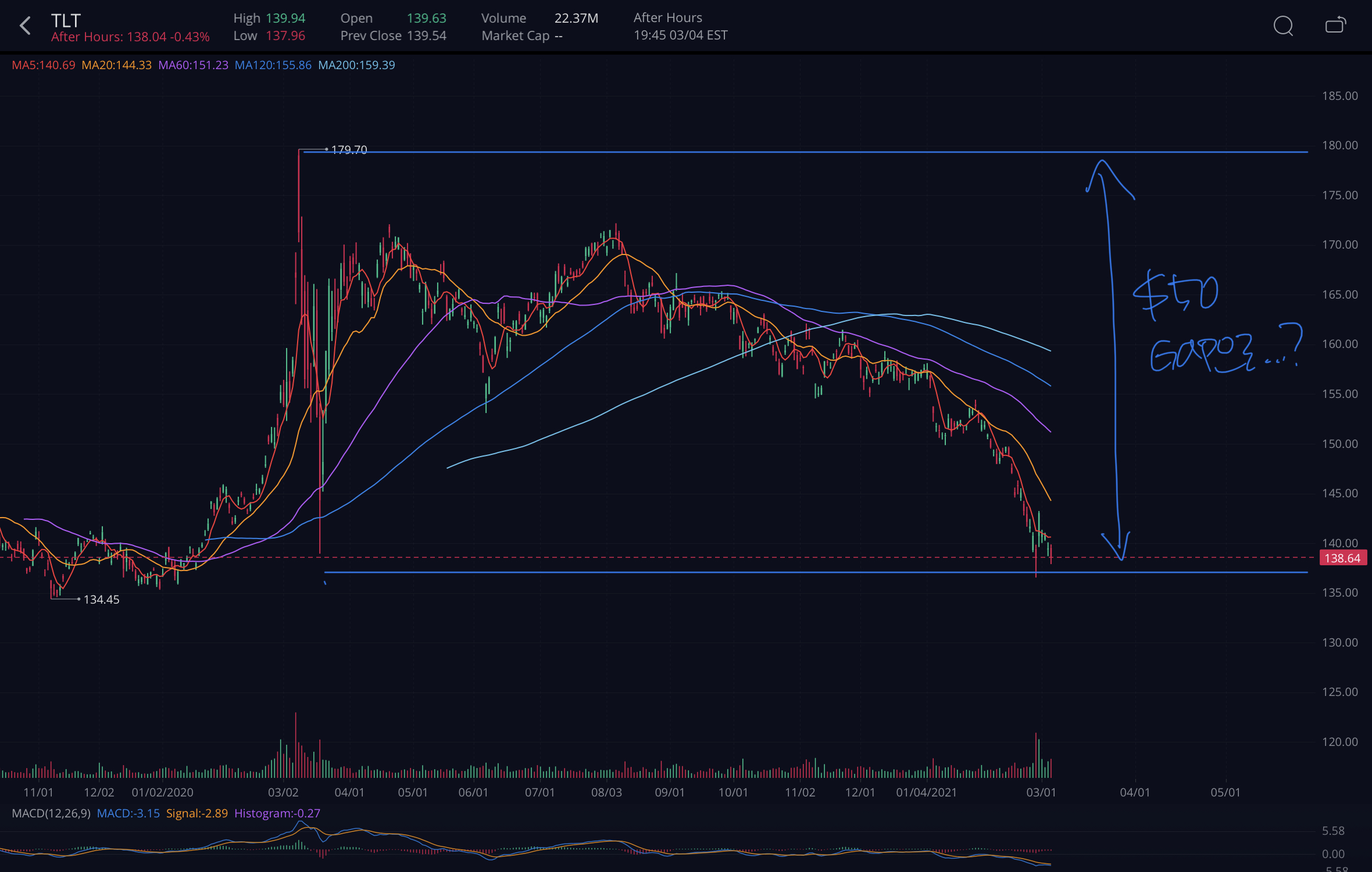 TLT를 보면 1년간 변동이 있어봐야 고작 주당 50불에, 코로나 이전과 비교하면 지금 가격은 사실 큰 변화가 없고... 주식을 헷지하려면 대체 얼마나 들고 있어야 되는거임...?
