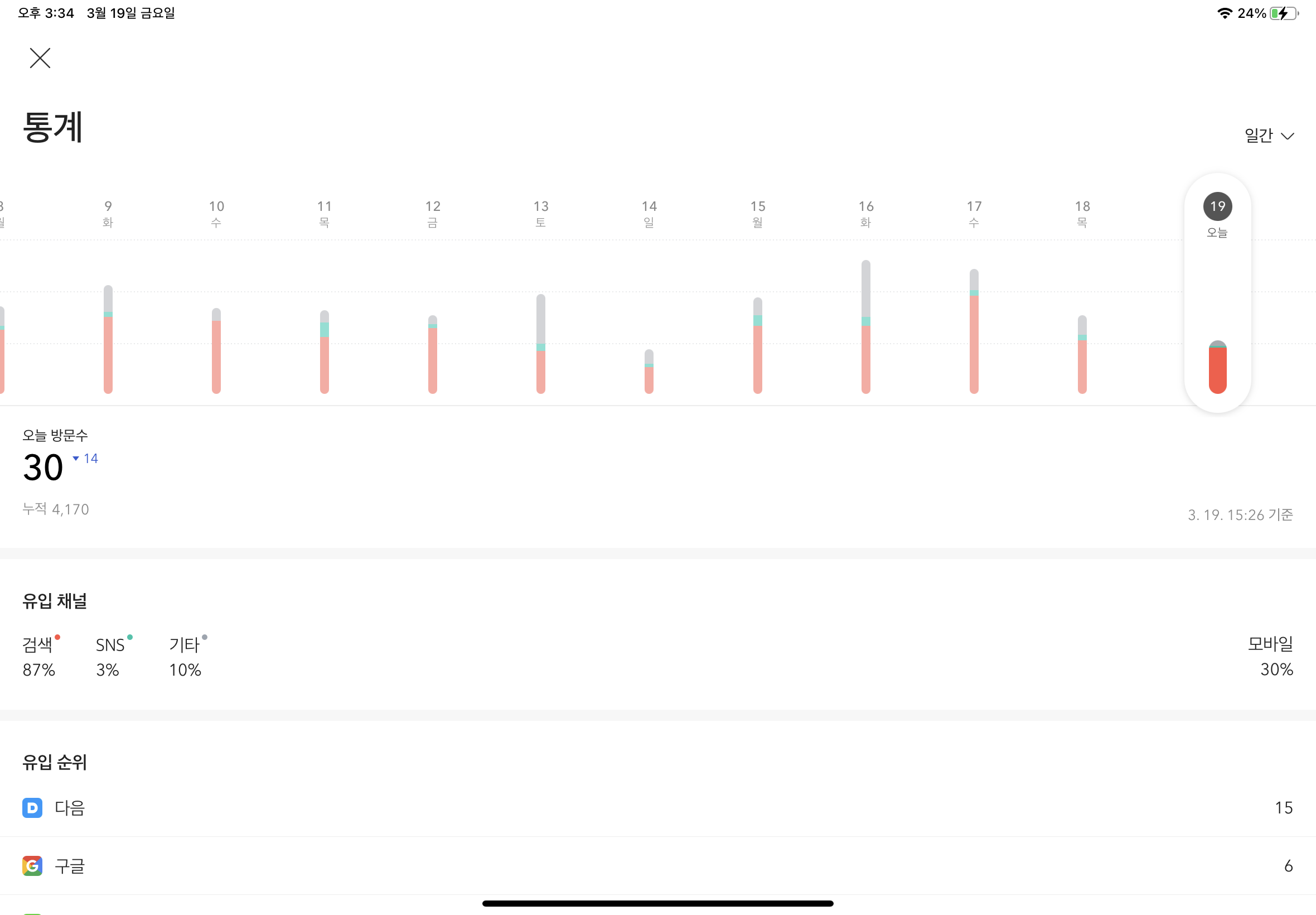 페이지뷰는 주당 40~70사이...