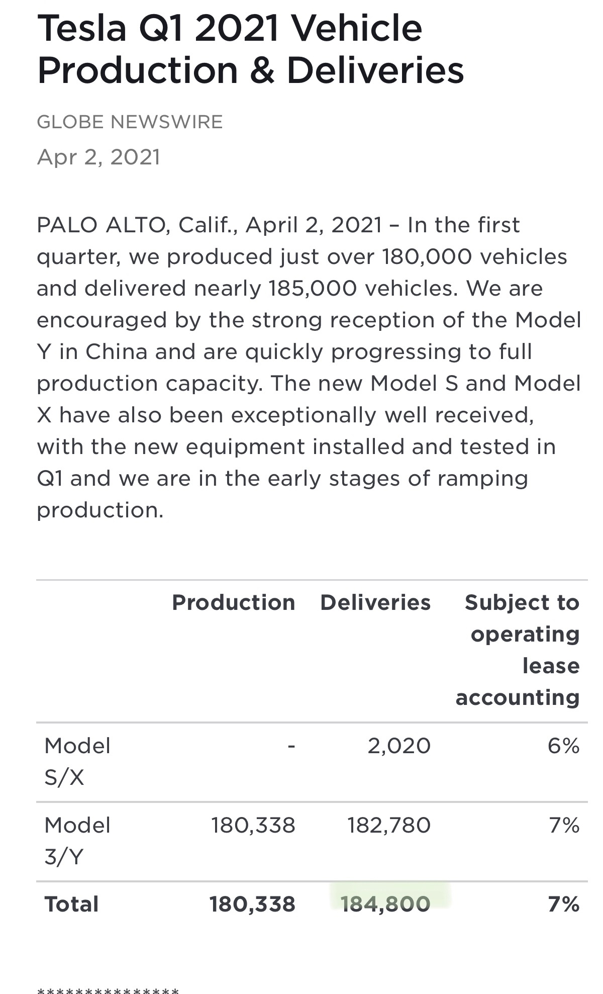 반도체 수급문제와 공장가동 중지로 낮을거라 예상했던 테슬라 1분기 인도량...