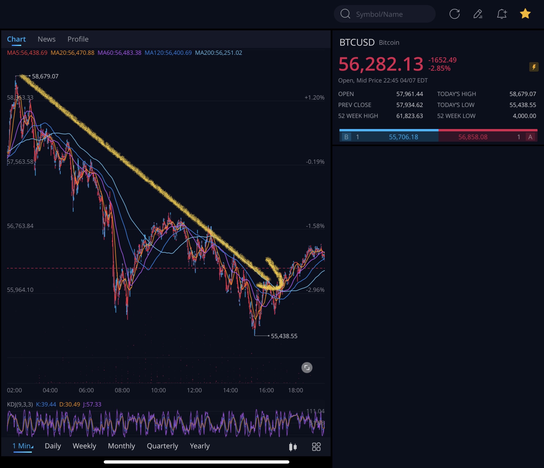 어제 비트코인이 소위말하는 떡락하는 순간이 있었다.