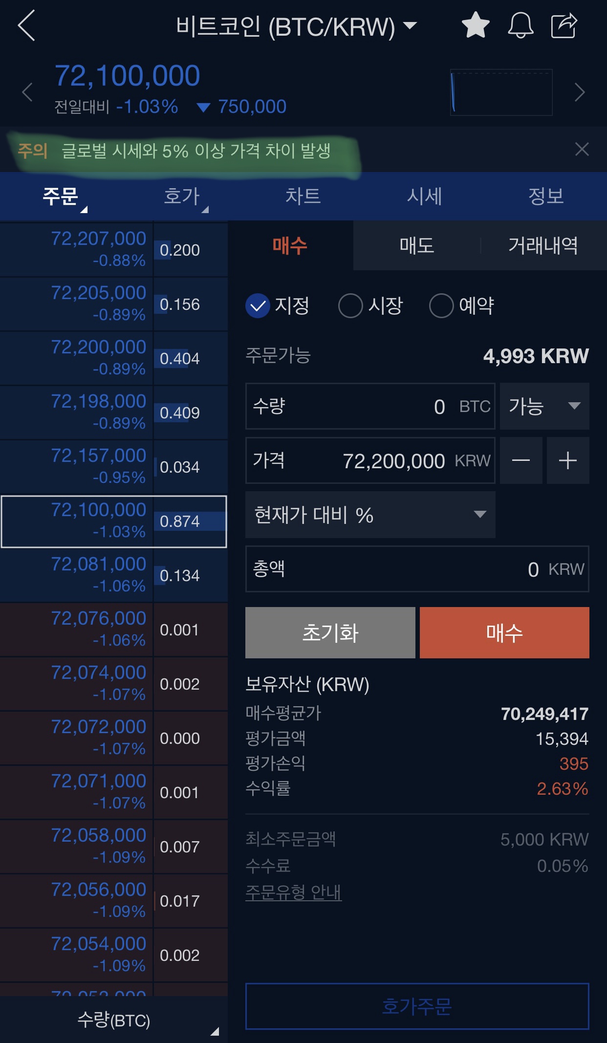어젯밤 떨어져가던 순간에도 업비트에선 ‘글로벌 시세와 5%이상 가격차이 발생’이라는 경고문을 내는데... 이게 과연 김프가 빠진것일지?